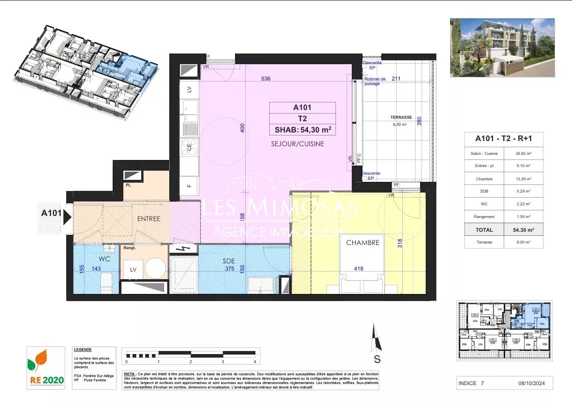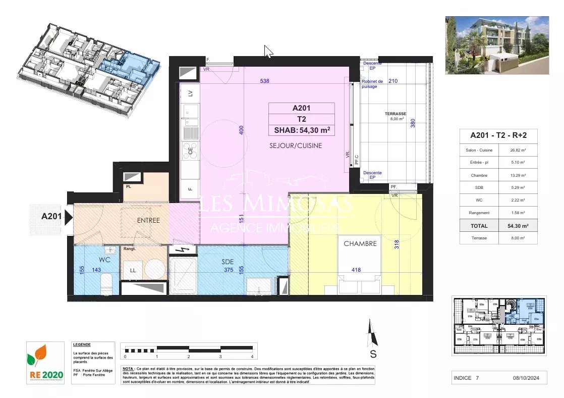 [0] => Dans une petite residence intimiste de standing (en cours de livraison), 2 appartements 2 pièces de 54,30 m² chacun: