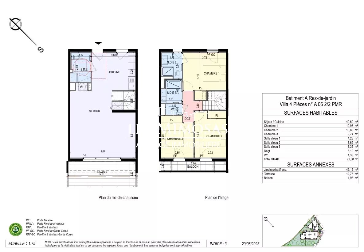 [0] => Au sein d'une copropriété intimiste de Standing (seulement 7 logements), 3 villas de 4 pièces avec des surfaces de 95 m² à 105 m² environ.