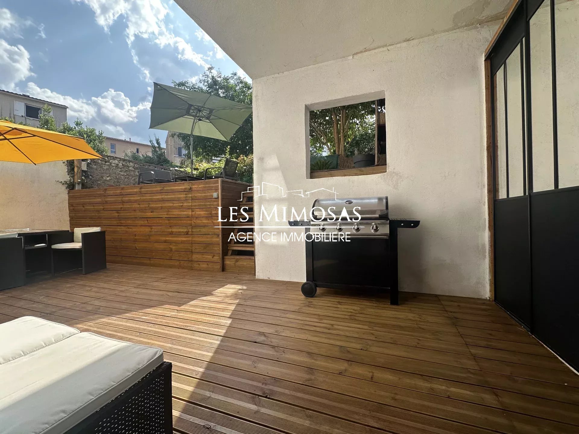 Profitez de deux terrasses totalisant environ 50 m², dont une partie couverte avec espace rangement – parfait pour vos moments de détente en toute saison.