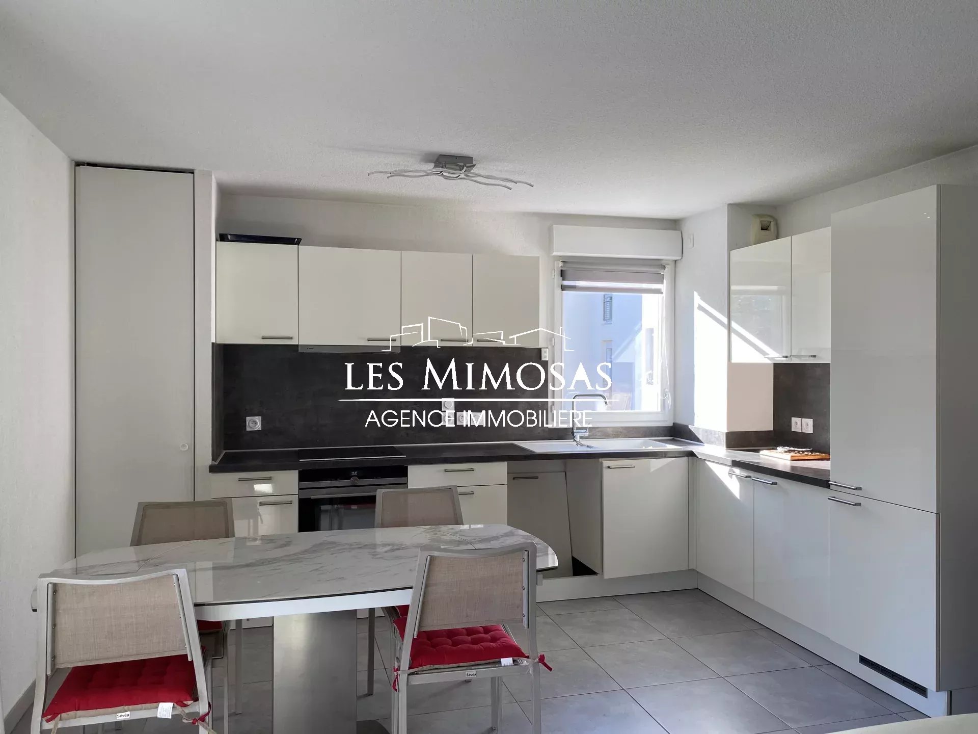 [0] => FREJUS - Dans une résidence sécurisée récente, Secteur avec tous les commerces de proximité a pied. Piste cyclable a la sortie de la résidence. Plage à 1,8 km env. Beau 3 pièces, salon/cuisine équipée, 2 chambres, salle d'eau, toilettes séparés, entrée avec placard. Grande terrasse avec cellier exposée SUD. Un stationnement privatif. Possibilité d'un garage au sous-sol.